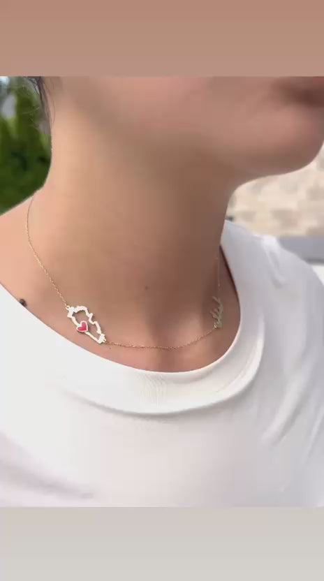 Lebanese Map and Lebanon Word in Arabic Necklace ( 18k Solid Gold )
